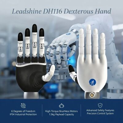 Leadshine DH116 is a general-purpose 5-finger dexterous hand with 11 degrees of freedom (6 active). It combines brushless coreless motors, high-speed EtherCAT communication, and strong tactile/force perception. This model is built for collaborative robot applications, humanoid prototypes, and education/research platforms that need cost-effective yet capable dexterous end-effectors.